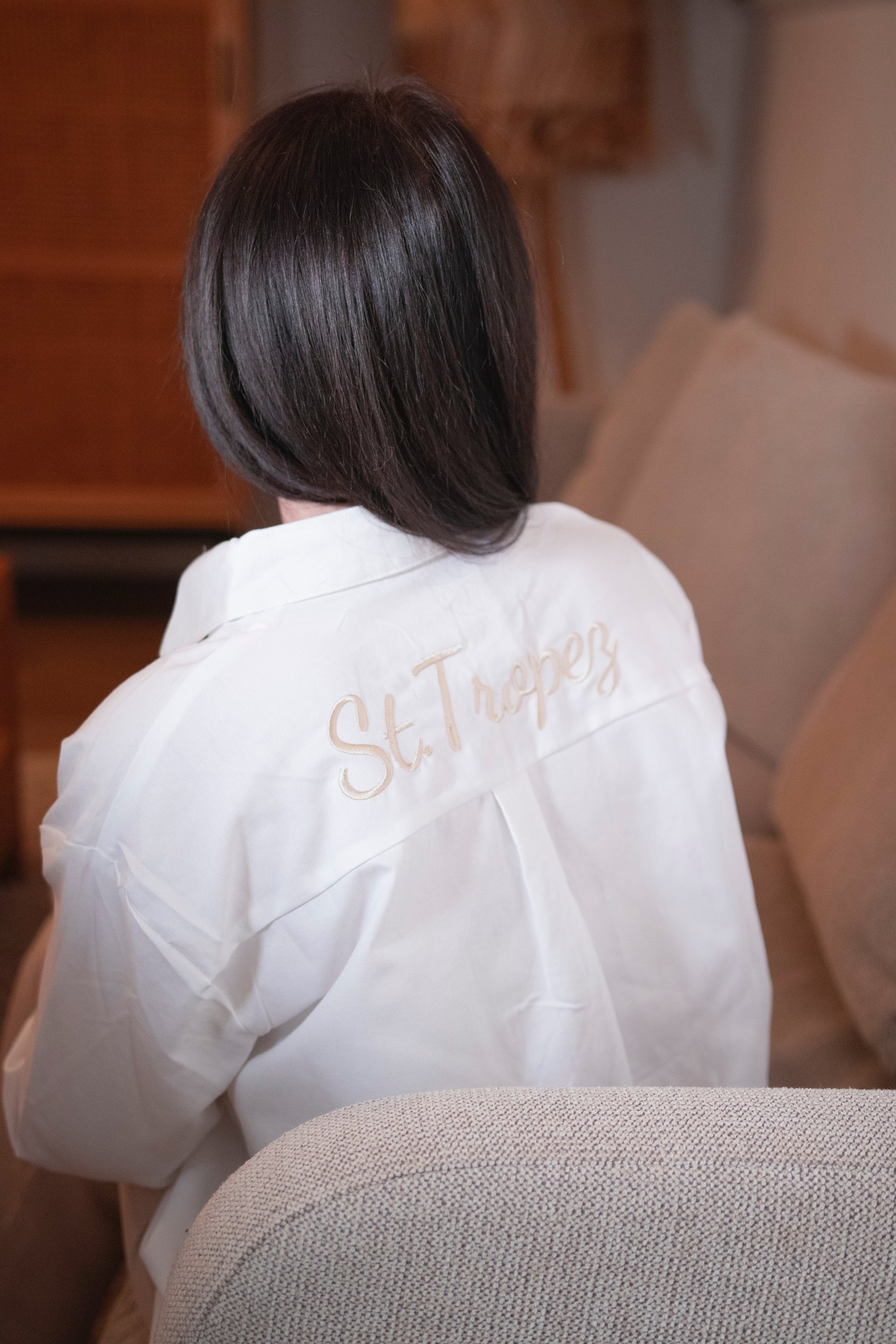 Chemisier en coton de qualité supérieure orné d'une bordure signature St Tropez. En taille unique convient jusqu'a un 42
